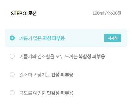 - 피부타입별 제품 타입 선택지