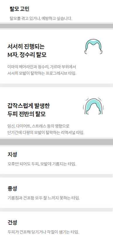 두피 문제점별 / 두피 타입별 선택