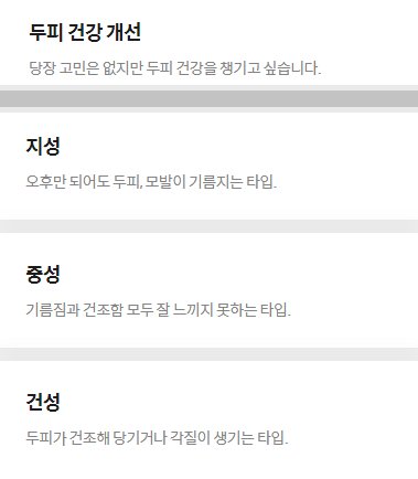 [지성 중성 건성]으로 세분화되서 선택할 수 있습니다.