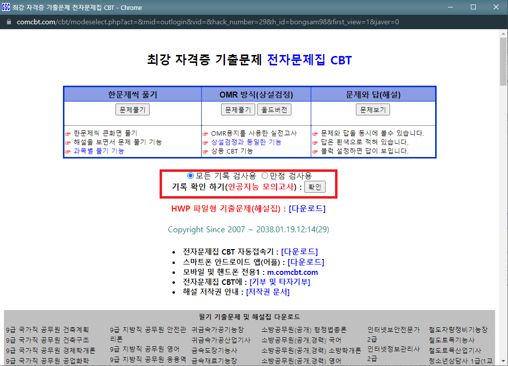 모바일 및 컴퓨터 홈페이지에서도 문제를 시험장과 유사하게 치를수있습니다