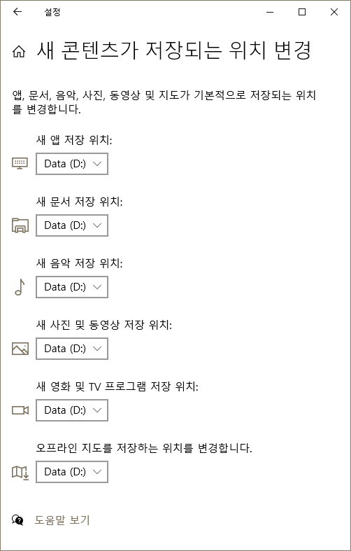 저는 이세팅을 전부 D드라이버로 설정합니다.